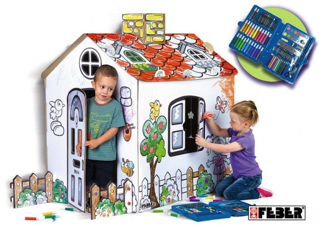 La casa de cartón de Feber (37 euros / 35 con el descuento que se aplica) se convertirá en el refugio para que tus hijos vayan a contarse secretos, o en el lugar a dónde trasladen el juego de té. Tiene 1,04 metros de alto, 1,06 de largo y 0,82 de ancho, se puede montar y desmontar fácilmente, y se acompaña de un estuche con rotuladores, ceras, lápices de colores, lápices pastel, acuarelas, pincel, tijeras y regla. ¿Para qué todo esto?, pues para que vuestros hijos pinten como quieran los pájaros, la cerca, las mariposas y hasta la chimenea.