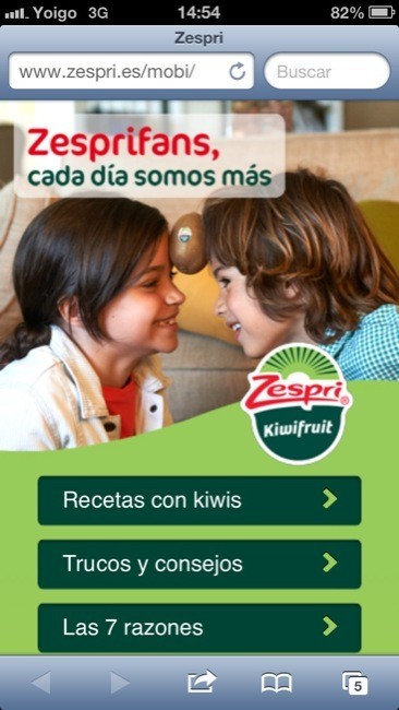 La empresa Zespri comercializa los kiwis que llevan su nombre en más de 80 países de todo el mundo. Desde la empresa están continuamente analizando los gustos y las tendencias de los consumidores de los diferentes mercados europeos. Así que para facilitar a los consumidores el acceso directo a información práctica sobre el kiwi y fomentar un estilo de vida más saludable entre la población, acaban de lanzar una nueva página web diseñada exclusivamente para navegar a través de smartphones (teléfonos con acceso a Internet y redes sociales).