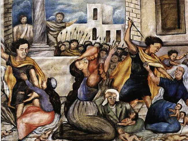 Como sabréis, según los textos sagrados el rey Herodes fue informado por los Reyes Magos, acerca del nacimiento del Mesías, y este temiendo perder su trono, intentó localizar al recién nacido. No lo conocía personalmente, así que el despotismo hizo el resto. Jesús se salvó porque sus padres huyeron, no así los otros bebés que cayeron víctimas de la ira del tirano; pero bueno, escandalicémonos en la justa medida, porque hace unos día vi algunas de las últimas imágenes de matanzas en Siria, y ver decenas de cuerpos sin vidas de niños tirados en el suelo, no parece indicar que los humanos hayamos ido a mejor.
