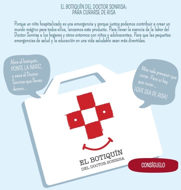 Con la venta de cada botiquín, se puede asegurar que habrá una visita del Doctor Sonrisa a un niño hospitalizado. Actualmente, la Fundación Theodora dispone de 30 Doctores Sonrisa que visitan de forma individualizada a los pacientes ingresados en centros hospitalarios. Asimismo, acompañan a los niños y a sus familiares antes y después de ser intervenidos quirúrgicamente con el objetivo de reducir el estrés físico y emocional que se produce en estos momentos. El Botiquín del Doctor Sonrisa cuesta 17,60 euros e incluye el IVA.