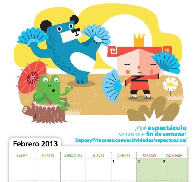Y para enriquecer el calendario han incluido en cada página del mes enlaces al sitio en Internet de Sapos y Princesas para que no se nos olvide ninguna de las ofertas de ocio que aparecen en la revista.
