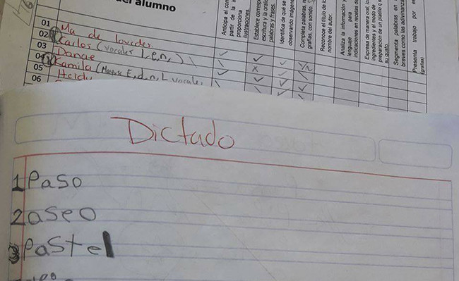 Una imagen de un dictado enviada por un profesor y que está acompañada por dos simples palabras: "Los literales", ha hecho ambas. Y es que el dictado comenzó con algunas palabras sencillas como "paso", "aseo" y "pastel", pero al revisarlo, el profesor se dio cuenta que éste concluye con una muy rara: "Alansietate".
