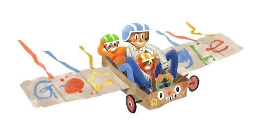 En esta ocasión el buscador más usado del mundo se inicia con el dibujo de una avioneta de cartón sobre ruedas en la que aparece un papá jugando con sus hijos. Y las letras "caseras", pintadas a mano, de Google, sobre las alas.
