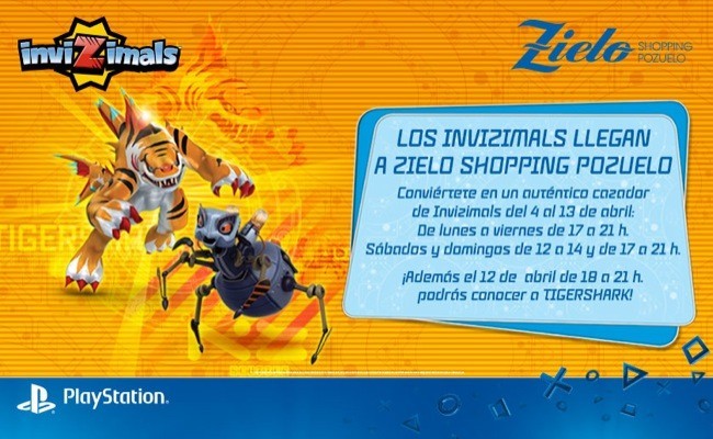 El fascinante mundo de Invizimals llega a Zielo Shopping Pozuelo. Así, el centro comercial acogerá la Base de Cazadores de Invizimals del 4 al 13 de abril de 2014 de forma ininterrumpida. El objetivo es que los peques puedan ir a jugar a los últimos videojuegos de la saga, intercambiar cartas de Invizimals: Nueva Alianza y conocer a Tigershark en persona.