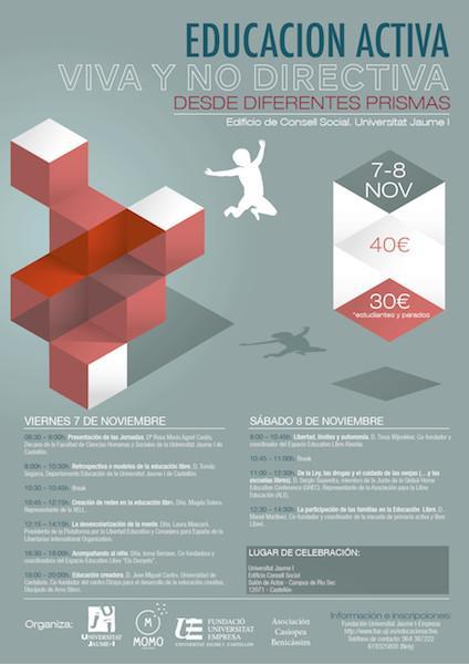 En el programa encontraréis - entre otras valiosas aportaciones - que el Congreso cuenta con la presencia de Manel Martínez (co fundador de Liberi). Os cuento por último, que la iniciativa ha sido posible gracias a la colaboración de la UJI, Momo Espai Educatiu, la Fundació Universitat Empresa i la Asociación Casiopea de Benicassim.