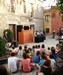 En la imagen se puede ver a los niños en el pueblo de Navacerrada de Madrid asistiendo encantados a la representación de Los Tres Cerditos por la Compañía Tropos Teatro. Durante casi una hora los niños estuvieron muy pendientes de la evolución un espectáculo muy sencillo realizado básicamente con muñecos de guante. Como dicen en su página en Internet, apenas tiene escenografía, simplemente el teatrillo de titiritero sin decorados ni telones de fondo. La adaptación del cuento es realmente simpática, creativa y muy divertida no sólo para los niños, sino también para los mayores que acompañábamos a los peques mientras asistían atentos a la función.