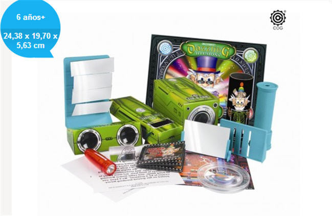 Se trata de un kit con 10 actividades científicas relacionadas con la luz para que los niños aprendan sobre el reflejo y la distorsión, la transformación de la luz, las longitudes de onda de luz, etc.