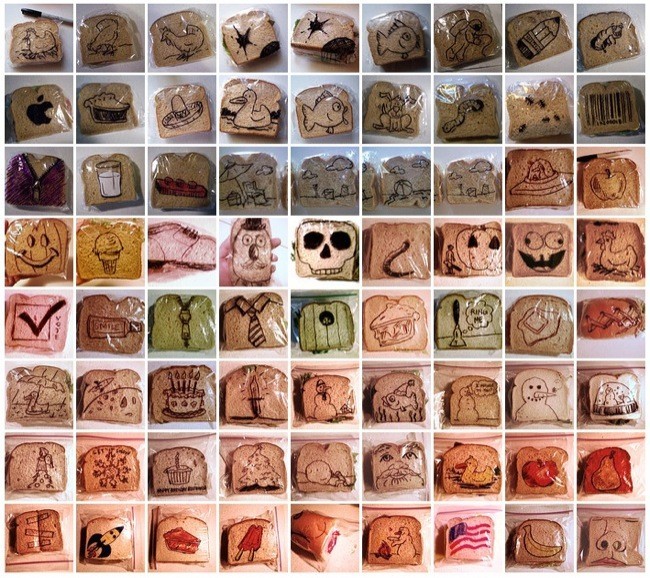 Lo que creo que no hacía ningún padre ni madre era lo que en la actualidad hace David Laferriere, un diseñador gráfico e ilustrador que además hace Doodles. David dice que lo hace desde el año 2008 y que lo realiza en la bolsita en la que introduce el bocadillo o sandwich que se llevan sus hijos al colegio. Además explica que cada dibujo lo realiza una vez que ha terminado de guardar el alimento, que le hace una fotografía y que la sube a Flickr. Y también dice que sus hijos no ven el dibujo hasta que no llega la hora del almuerzo en el colegio.