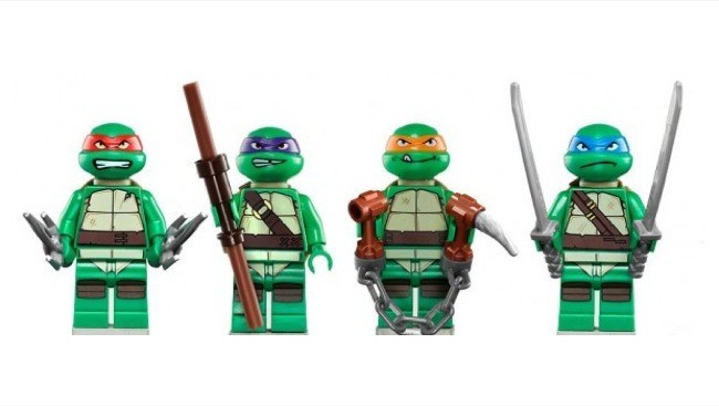 Así que desde Lego nos proponen jugar con las tortugas Ninja. Recordamos que la primera Tortuga Ninja nació en noviembre de 1983 en la imaginación del dibujante Kevin Eastman, aunque el primer cómic no salió a la venta hasta el 5 de mayo de 1984. El éxito de sus dibujos se trasladó a la televisión en forma de serie animada, convirtiéndose en una de las más famosas de los años 80. Y además, recordamos que Las Tortugas Ninja cumplen 30 años y lo celebran con una nueva película y una fuerte presencia en televisión. Y Lego también ha querido hacer un homenaje a los Tortugas Ninja comecializando varios sets de construcción y minifiguras.