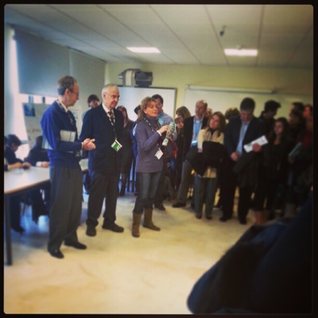 En la imagen se puede ver en el centro a José María López Sancho, Director del Programa CSIC en la Escuela que es Físico y Profesor de Investigación del Instituto de Física Fundamental. También está María José Gómez Díaz, coordinadora del Programa y profesora de EGB, especializada en la formación del profesorado de los primeros niveles educativos en el campo de la enseñanza de la ciencia y Martín Martínez Ripoll, profesor de investigación del CSIC y Presidente del Comité Científico-Asesor del programa. La foto la tomé durante la celebración de la Junior First Lego League en Madrid en la sede de la Universidad Camilo José Cela el sábado 23 de febrero 2013.