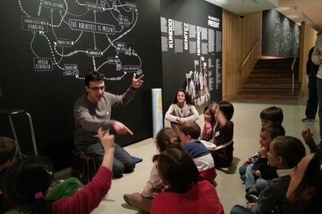 El Museo ICO de Madrid presenta hasta el 18 de mayo la exposición The Architect is Present. El espacio dedicado al evento no sólo es para exponer materiales, imágenes y vídeos sino que además hay un lugar destacado en la exposición en el que un estudio de arquitectura trabaja con alumnos. El objetivo es que trabajen hasta cinco estudios, de forma consecutiva, con alumnos españoles que pueden además ganar una beca para trabajar. Hemos ido a realizar un taller infantil organizado por Hablar en Arte y la verdad es que al ver al estudio de arquitectura parecía Wayra.