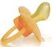 También puedes elegir el material, látex o silicona. El látex es un material natural elástico y blando y la silicona es sintética y algo más rígida, más resistente a las repetidas esterilizaciones pero no a los dientes del bebé, por lo que cuando empiezan a salirle se recomienda el chupete de látex.