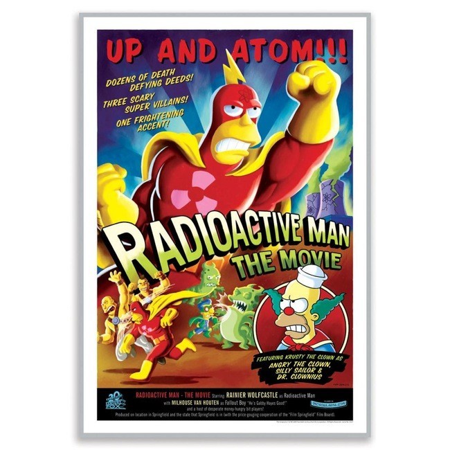 Se trata de una impresión giclée sobre papel de archivo creada a partir de dibujos originales. El Hombre Radioactivo es un superhéroe de cómic que aparece en los Simpson y que obtuvo sus poderes tras sobrevivir a una explosión nuclear.