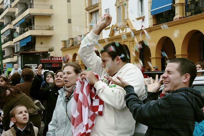 Una de las cosas que sorprenden cuando vas a ver en vivo una cabalgata de Reyes es el lanzamiento de caramelos y otras chuches a los asistentes al evento y en especial a los niños que asisten atónitos en la primera fila viendo a sus personajes favoritos y esperando a los Reyes Magos al final. Aunque en muchas ocasiones los caramelos acaban en las alforjas, bolsas, bolsos e incluso en los paraguas invertidos que se llevan muchos asistentes, es cierto que muchos caen al suelo y no se pierden porque enseguida se producen remolinos de niños y mayores para recogerlos especialmente los que caen a los pies.