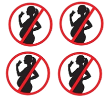 La información en cuestión indica los riesgos que el consumo de alcohol puede producir en el futuro bebé. Un claro logotipo muestra las recomendaciones, se trata de una mujer embarazada con un vaso de alcohol en su mano y una señal circular de prohibición sobre ella.
