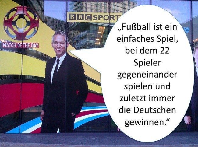 Gary Lineker ha sido uno de los delanteros centros más importantes del mundo con una gran capacidad para marcar goles y nunca dar una pelota por perdida. En el vídeo de más abajo se le puede ver marcando goles sin parar con su selección, la inglesa, en los años 90. Y sí, también hay algunos que marca a España. Gary Lineker es la persona que dijo, como se puede ver en la imagen en perfecto alemán, que "el fútbol son once contra once y al final siempre gana Alemania". Gary se pregunta, en un artículo escrito en Newstatesman y que se enlaza más abajo, que qué le pasa a Inglaterra que siempre falla en el fútbol en los grandes acontecimientos.