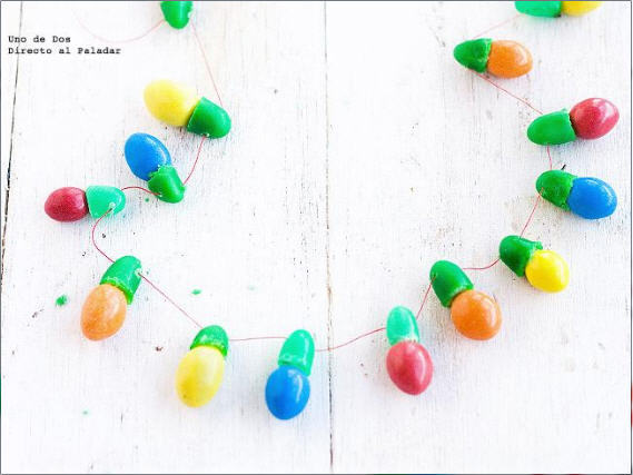 Os he traído una idea muy bonita para ‘iluminar’ vuestro árbol de Navidad: con estas guirnaldas de ‘luces’ dulces no os tenéis que preocupar por si los niños se queman ni arriesgaros a que manipulen sin daros cuenta enchufes o cables.