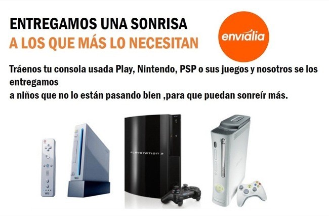 La campaña de Envialia, junto a Juegaterapia, se llama Dona tu videoconsola nueva o antigua para hacer sonreír a un niño enfermo de cáncer y tiene como objetivo sensibilizar a quienes tienen videoconsolas en casa que no usan para que las donen y que los niños hospitalizados puedan disfrutarlas, pues el juego es uno de los derechos de la infancia. En casa lo hicimos esta pasada Navidad y la experiencia fue de lo más sencilla, sólo tuve que ir a Envialia con la consola y ellos se encargaron de recogerla y embalarla, de forma gratuita, y de llevarla a Juegaterapia. Después nos enviaron un mensaje de agradecimiento que se puede ver más abajo y en la que prima el mensaje: "la quimio jugando se pasa volando".