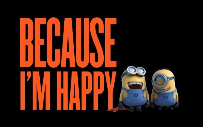 La canción Happy de Pharrell Williams lleva un par de meses sonando por todas partes y hasta ha saltado a los telediarios de la televisión por las copias y réplicas de su vídeo cantando la canción Happy. En el coche cada vez que nos montamos la peque lo pone en el iPod y la verdad es que es muy buena canción, con mucho ritmo y muy alegre. Y es que además de que creo que hay un poco de ganas de estar feliz, es muy divertido ver a los peques bailándola y ambientándola ¡mucho mejor con los Minions!