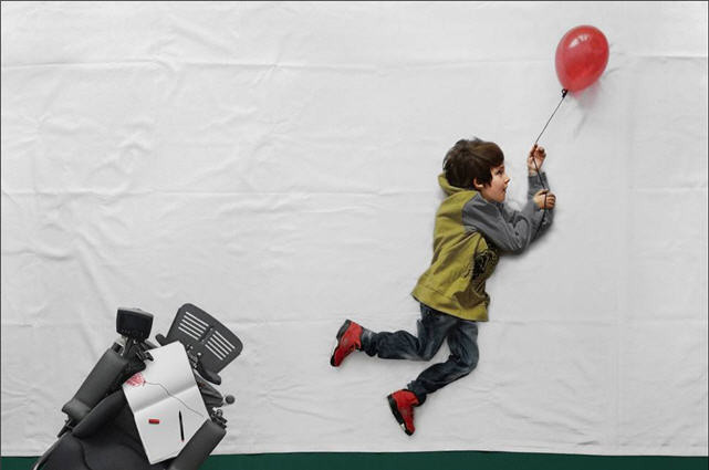 Mientras el niño estaba recostado en el suelo, el fotógrafo iniciaba su trabajo que se completaría con una serie de trucos digitales, un sueño hecho realidad, que también requería de la actitud esperanzada y positiva de Luka.