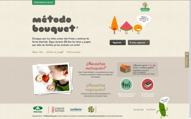 Bouquet es una empresa hortofrutícola española asentada en el Mediterráneo y líder en la comercialización de frutas y hortalizas. Está promocionando, con gran éxito, el método bouquet que es un juego online para familias que quieren adquirir hábitos de alimentación saludable mediante el consumo de una dieta rica en fruta y verduras.