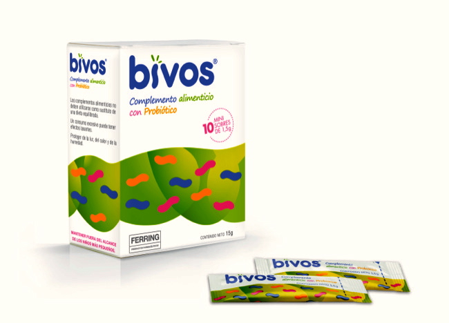 El producto Bivos está fabricado por Ferring, cuyo Director General, Dr. Juan Carlos Aguilera, nos explicó que su laboratorio está especializado en productos pediátricos. Nos explicó que han trabajado en una presentación del producto pensando en que las madres y los padres se lo puedan llevar fuera de casa para administrarlo al niño, que puede mezclarse con líquidos o tomar directamente, que no tiene sabor y que es capaz de conservarse sin cuidados especiales. La presentación son sobrecitos de fácil apertura y con un precio venta al público de 99 céntimos de euro. La dosis recomendada, siempre bajo prescripción de los pediatras, es de un sobre al día. Se presenta en cajas de 10 sobres, que contienen polvo liofilizado, que se conserva a temperatura ambiente y que no contiene gluten ni derivados lácteos.