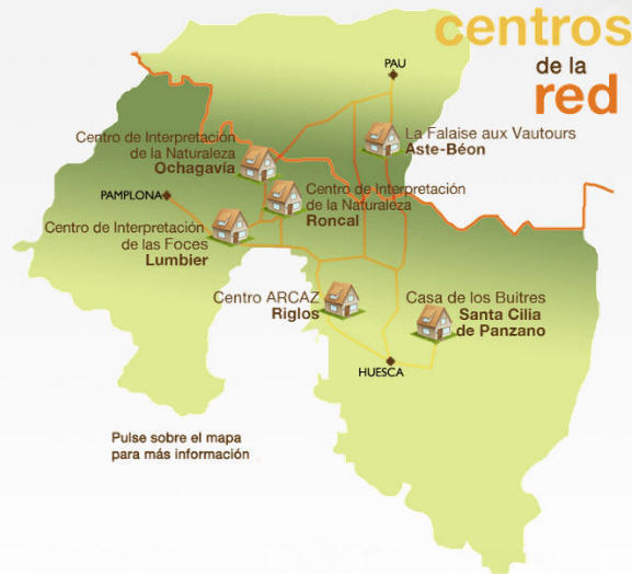 Os voy a hablar de la Red de Turismo Ornitológico Vultouris, que está formada por seis Centros de Interpretación de la Naturaleza de la Comarca de la Hoya de Huesca, Navarra y el valle d’Ossau (Francia). Esta Red Transpirenaica tiene como principal interés el trabajo con tres aves emblemáticas de estos territorios: el buitre leonado, el quebrantahuesos y el alimoche.