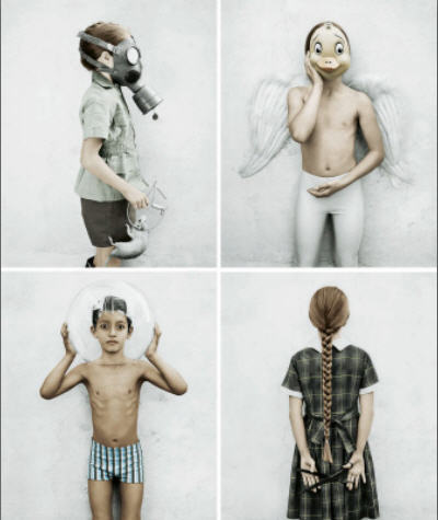La inspiración le llegó a Vee fotografiando a la menor de sus tres hijas mientras se vestía de formas diferentes, y la verdad es que yo sólo veo imágenes originales y curiosas. ¿Queréis saber si me gustan?, pues tengo una opinión un poco ambivalente porque por una parte algunas de ellas me parecen bonitas, aunque en general me transmiten un poco de inquietud debido a la expresión de los pequeños y a algunos de los atuendos.