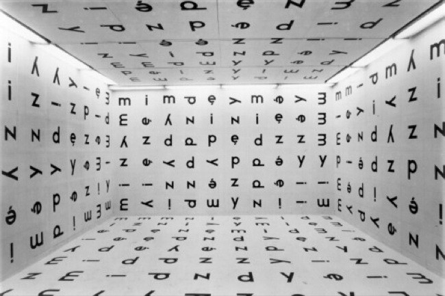 A mi hija le gustó la obra que ilustra el artículo. Se llama Między (Entre), es de 1977 y es una instalación que tiene un tamaño de 700 x 450 x 300 centímetros. Es de Stanisław Dróżdż y la clave de la obra es que te metes dentro y puedes tocar, caminar, contemplar y también oler. Nos explicaron que el olor que había dentro de la obra formaba parte de ella e incluía aromas de plástico y pegamento muy intenso y algo molesto. Aún así para un niño, al que cuando entran al Museo le dicen: NO se puede tocar, NO se puede correr, NO se puede gritar, que le digan que aquí se puede tocar, correr y disfrutar la obra desde el interior, es muy divertido. Entre los muchos artistas que vimos quiero destacar a Edward Krasińki, un artista polaco que crea sus instalaciones y representaciones firmándolas con una cinta adhesiva azul colocada a 130 centímetros del suelo y sobre la obra, sea la que sea. Tener esa determinación para firmar las obras y la forma de hacerlo seguro que sugirió a los niños un montón de ideas y pensamientos que reproducirán en sus juegos y aventuras.