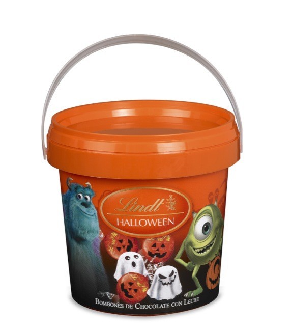 Me gusta mucho la propuesta de Lindt para disfrutar en Halloween con el cubo de plástico que, una vez vacío de chocolates, nos puede servir para que los peques puedan hacer truco o trato con sus amigos. Dentro del recipiente se pueden encontrar bombones de chocolate con leche vestidos de fantasmas y calabazas.