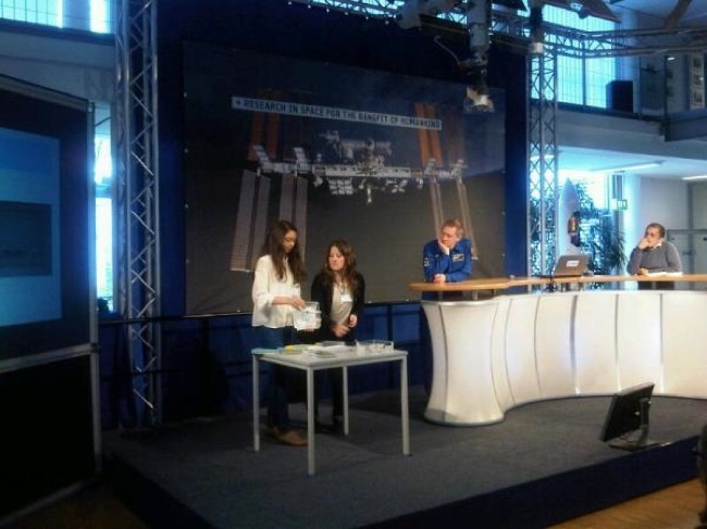 Y Laura y María fueron de las elegidas para reproducir el experimento que ya hemos visto por aquí. En la imagen, obtenida de la cuenta de Twitter de la ESA, se las puede ver en acción ante el resto de participantes. Me parecen un ejemplo a seguir estas chicas y me gustaría poder contactar con ellas para que vengan a Peques y Más a contar toda la experiencia que les ha hecho viajar por Estados Unidos y Europa.