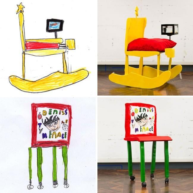 Hace tiempo que hablamos en Peques y Más de cómo los dibujos de extrañas criaturas realizadas por nuestros hijos se convertían en adorables peluches. Ahora traemos los diseños reales de dos sillas basadas en las creaciones imaginativas de dos peques de ocho años. Es un trabajo de Jack Beveridge y Joshua Lake que se fueron a una escuela de primaria a pedirles a los niños que dibujasen una silla. Les proporcionaron papel y pinturas y animaron a los peques a construir el sitio en el que les encantaría sentarse. Como casi siempre en estos casos la imaginación de los niños es muy difícil de trasladar a la realidad así que me imagino que los diseñadores eligieron los que mejor se adaptaban a sus necesidades y que además cumplieran que fueran diseños atractivos.