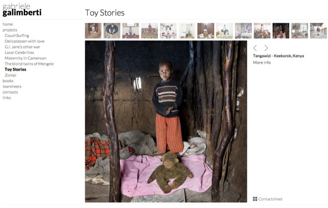 Creo que es muy interesante ver el trabajo realizado por Gabriele Galimberti que se ha dado la vuelta al mundo realizando imágenes de los niños y niñas de muchos países con los juguetes que para ellos son los más preciados. Cada foto cuenta una historia no sólo por los juguetes que se ven en la imagen, cuya cantidad y variedad sorprende, sino por el entorno en el que se realizan las fotografías.