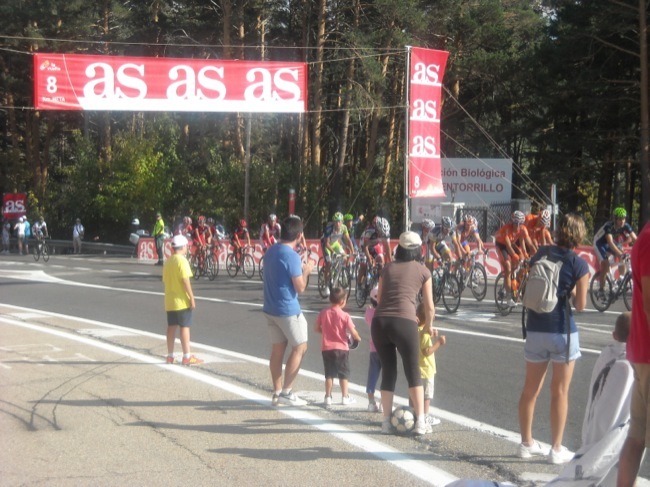 Ayer me acerqué a una zona del Puerto de Navacerrada para ver a los ciclistas bajar y subir después hasta cubrir el final de etapa en la Bola del Mundo. Durante todo el recorrido lo que más vi fueron niños acompañados de sus padres esperando impacientes para ver pasar a los corredores.