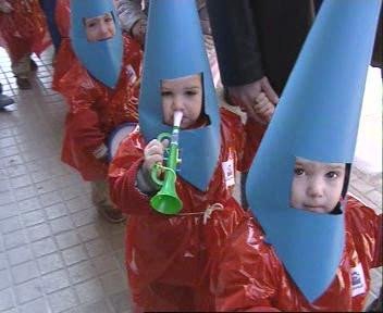 Los niños tocaban los tambores y las trompetas y seguramente disfrutaban con este pequeño desfile. Han estado ensayando durante algunos días con el fin de que todo saliera perfecto. Muchos padres se asombraban del buen comportamiento de sus hijos, sin salirse de la fila o quitarse el gorro típico de la procesión y es que los niños sentían que eran el centro de atención.