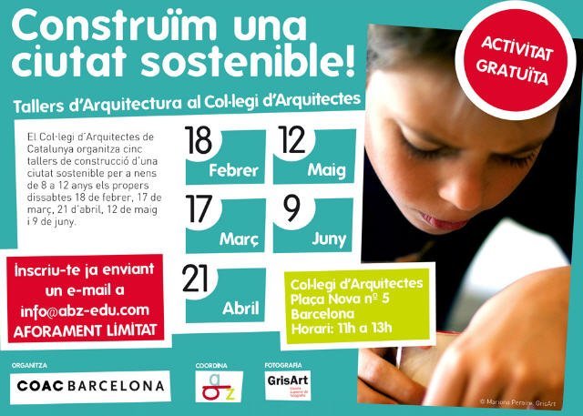 Todas las actividades se realizarán en horario de 11 a 13 horas, y en el entresuelo del COAC en plaça Nova (Barcelona) Podéis solicitar más información y comunicar las inscripciones al correo electrónico info@abz-edu.com. Sin duda es una buena oportunidad para acercar el conocimiento a los más pequeños y ¡quién sabe! quizás alguno de ellos descubra su vocación.