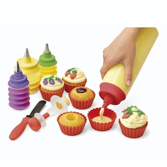 Como cada vez hay más afición por la cocina es necesario que los utensilios sean lo más variados y versátiles posibles para realizar y presentar los alimentos de la mejor forma. Por ejemplo, el set de repostería de Kuhn Rikon está formado por una botella alta de gran capacidad, tres biberones acordeón perfectos para la decoración, una espátula, un descorazonador para poder rellenar los cupcakes y unos moldes para el horno que aguantan más de 240 grados de temperatura. Además todos los utensilios son fáciles de limpiar y aptos para el lavavajillas.