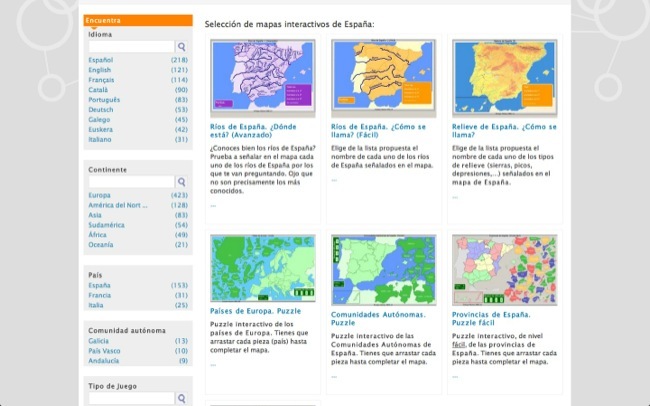 Y aún hay más porque el sitio muestra mapas de la geografía de España y del Mundo en general con posibilidad de jugar, como si fuera un puzzle, a encajar provincias en el mapa, a nombrar los principales ríos, afluentes y accidentes geográficos de España. Creo que la mayoría son recursos en flash muy sencillos aunque tremendamente útiles porque de lo que se trata es de saber localizar los accidentes geográficos más importantes de forma rápida y entretenida.