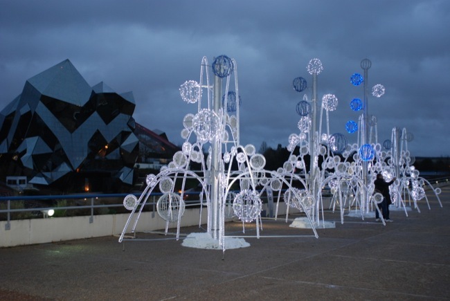 La proyección del documental Viajeros del cielo y del mar de Jacques Perrin y Jacques Cluzaud, se realiza en una sala gigantesca en la que las imágenes se proyectan en la pantalla más grande que he visto en mi vida porque además de que la superficie era enorme también se proyecta por debajo de tus pies. Se trata de un viaje por la naturaleza de un montón de animales en la que se consigue un efecto envolvente con una proyección fantástica. Es un espectáculo muy técnico en el que se han invertido muchas horas de grabación y montaje para un resultado final lleno de naturaleza. La definición de las imágenes es alucinante y la sensación de estar transportado al cielo y al mar asistiendo en directo está realmente conseguida.