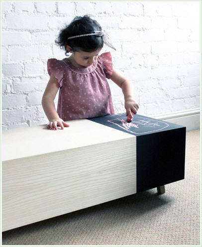 La cuestión es que uno de sus extremos está preparado para que los niños puedan dibujar con tizas sobre el mueble sin tenerles que reñir, porque después lo podemos borrar.