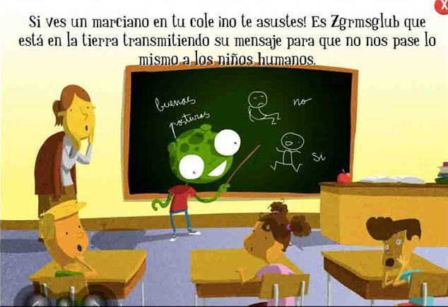 La información se explica a través de un cuento infantil protagonizado por “Zgmrtsglub” un simpático marcianto cuya mejor amiga se ha convertido en una estatua por adoptar malos hábitos, al haber dejado de lado los juegos saludables. El niño, a través de la interacción con los personajes y objetos, ayudará al protagonista a recuperar a su mejor amiga, a través de recomendaciones saludables y cambio de hábitos.
