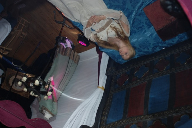 Detalles del diseño de vestuario original de Custo DalmauLa exposición gusta a pequeños y mayores, especialmente a estos últimos porque nos quedamos encantados con los trajes originales y los complementos de las actrices Angelina Jolie y Elle Fanning que representan a Maléfica y a la princesa Aurora respectivamente. También sorprende la rueca, en la habitación de la Bella Durmiente, que se utilizó en la película para provocar el sueño a la princesa Aurora aunque no vi la aguja por ninguna parte.