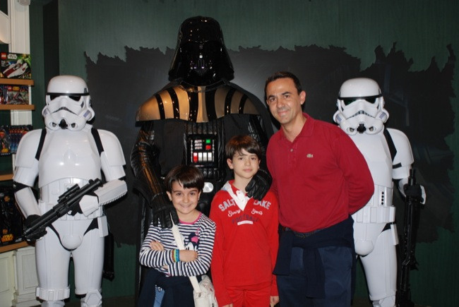 Como habíamos comentado en Peques y Más Darth Vader y varios Soldados Imperiales iban a visitar la Disney Store de La Vaguada el día 3 de mayo de 2014. Así que nos fuimos para conocer de cerca al gran protagonista, por lo malvado, de los episodios IV, V y VI. Cuando entraba por la tienda escoltado por los soldados imperiales blancos y brillantes sobrecogía con su enorme porte y con su traje oscuro y amenazador.