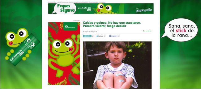 Peques Seguros es un espacio comercial independiente de los contenidos habituales de Peques y Más. Está patrocinado por Calmatopic, un gel en forma de barrita que alivia la piel de los niños frente a pequeños golpes.