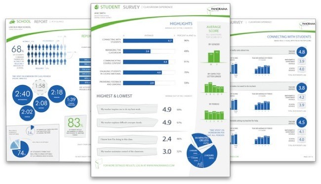 El punto clave de Panorama es contribuir a la mejora de la educación primaria y secundaria, utilizando el análisis de datos y realizando encuestas a maestros, padres y estudiantes con el fin de identificar carencias y aspectos a mejorar para que los gerentes tomen decisiones. Por ejemplo, sus encuestas permiten conocer la implicación y la participación de los padres en el proceso educativo, la situación del acoso y de la seguridad en la escuela, la participación de los estudiantes en su proceso formativo, la calidad de los profesores, etc. Panorama se utiliza en 4.000 escuelas a las que asisten más de un millón de estudiantes en Estados Unidos. La empresa la fundaron tres estudiantes de Yale: Aaron Feuer , Xan Tanner y David Carel.