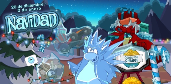 La iniciativa Coins For Change anima a que los peques cambien sus monedas por dinero de verdad para aquellos niños que los necesitan. Me dice mi hija que la iniciativa es para los niños, para salvar la naturaleza y para los enfermos. Del 20 de diciembre 2012 al 1 de enero 2013 se donará un millón de dólares a diferentes causas solidarias que, como informa Club Penguin, se aplican a la creación de unidades de ayuda médica en Lesotho, donaciones a zonas rurales de la India para crear un sistema de canalización de agua o la creación de escuelas en Haití.