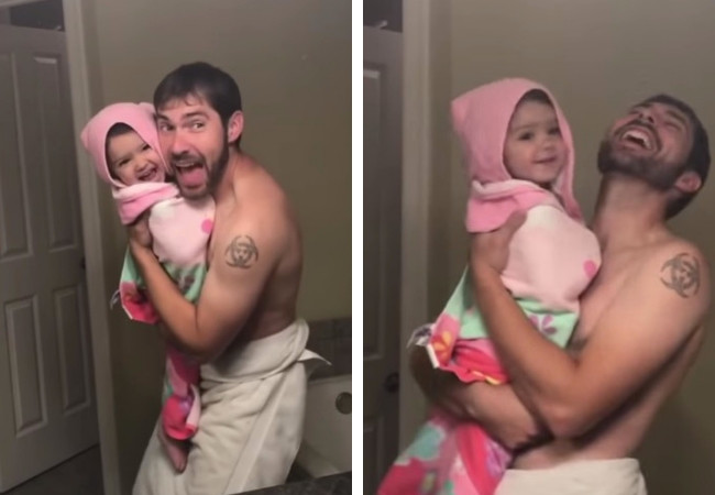 Seguro que muchos de vosotros cantáis y bailáis con vuestros hijos frente al espejo, al igual que este padre y su hija de dos años que se grabaron un día cualquiera después de la ducha sin imaginarse que ese momento espontáneo lo verían millones de personas.