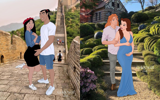 Entonces, se dio a la tarea de plasmar en ilustraciones cómo lucirían las princesas con sus príncipes mientras esperan a su bebé, en versiones modernas y utilizando escenarios actuales que coincidieran con la historia de cada una.