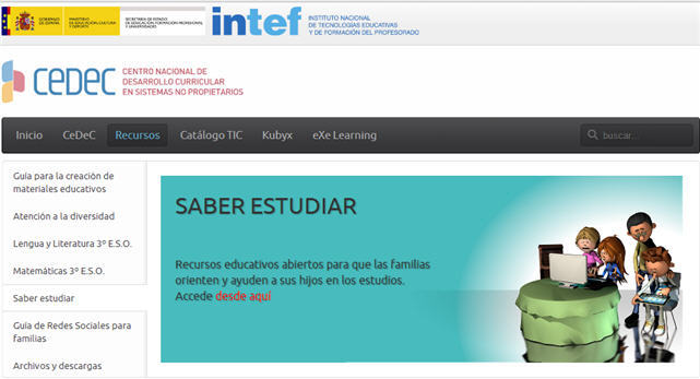 Desde la sección Recursos del CeDeC, además de acceder a ‘Saber Estudiar’, podemos consultar el resto de materiales del este Centro: Guía de Redes Sociales (de la que ya hemos hablado), Atención a la Diversidad, Creación de Materiales Curriculares, y otros.
