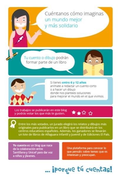 La iniciativa Yo cuento es una colaboración entre Santillana y Unicef para ofrecer un espacio público de participación a niños y jóvenes que sirva de escaparate para conocer lo que piensan sobre el mundo en el que viven. El reto es convertirse en una plataforma que estimule su creatividad y en la que pueden sugerir ideas y opciones que mejoren la convivencia y la vida en la sociedad actual.